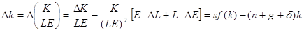 Данное соотношение является ключевым в модели. Оно утверждает, что величина изменения уровня капиталовооруженности одного работника с постоянной эффективностью труда определяется соотношением двух величин в расчете на одного работника – инвестиций Таким образом, в экономике уровень капиталовооруженности k падает, если фактические инвестиции меньше, чем необходимые для сохранения уровня k, и возрастает, если Вводится понятие устойчивого стационарного уровня