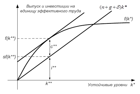 Рис. 5. Уровень капиталовооруженности по Золотому правилу Норма сбережений, соответствующая Золотому правилу, определяется из следующих условий: