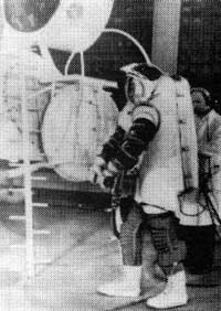 Рис. 20. Отработка прохода космонавта через люк кабины ЛК