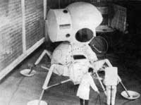 Скафандр ранцевого типа был отработан достаточно хорошо. Позднее он нашел свое применение в программах по орбитальным станциям. Оснащение кабины проходило по только что создававшимся правилам космической эргономики. Удобство работы было главным при оборудовании кабины. Надо было устанавливать целый ряд систем, с которыми космонавту надлежало работать. Практически все системы, кроме автоматического режима, имели ручной. Управление всеми ручными операциями производилось с пульта космонавта. Его разработка велась под руководством главного конструктора С.А.Бородина. Расположить пульт перед космонавтом по типу щитка управления на автомобиле не представлялось возможным, так как все свободное пространство занимал иллюминатор. Пришлось разместить пульт справа от иллюминатора, в зоне, где космонавт мог работать с ним правой рукой. На пульте расположили даже глобус Земли. Безусловно, посадка человека на другой планете даже сегодня кажется фантастической. Проектирование ЛК, как и других отечественных кораблей, велось так, чтобы выполнение программы осуществлялось практически без участия человека. Так проектировались корабль Ю.А.Гагарина «Восток», корабль «Союз». А здесь посадка на Луну! Какое психологическое состояние будет у космонавта? Да еще когда нет рядом партнера, способного помочь в любую минуту. Поэтому перед разработчиками Лунного корабля стояла еще одна сложнейшая задача: совершить посадку на Луну, взлет и стыковку с орбитальным кораблем в автоматическом режиме. Были даже придуманы особые лебедки, затаскивающие космонавта в кабину в случае потери им работоспособности на Луне. Контроль работы систем корабля и самочувствия космонавта проводила телевизионная камера, висевшая над головой космонавта. Перед выходом из кабины нужно было сбросить давление из нее, так как прижимающая сила внутреннего давления на выходной люк была настолько большой, что космонавту открыть его явно не хватило бы сил. Здесь нужно сказать, что роль специальной шлюзовой камеры, такой как на станции «Мир» и на кораблях «Спейс Шаттл», «Буран», выполняла сама кабина космонавтов. Поэтому установили специальный клапан сброса давления из кабины. Им управляли вручную. Время пребывания на поверхности Луны было определено в несколько часов. Это обуславливало только один выход космонавта на поверхность Луны. Но независимо от этого нужно было создать специальную систему шлюзования, которая позволяла бы с учетом аварийных ситуаций проводить наддув кабины несколько раз. Современная жилая комната на Земле всегда оборудована средствами подогрева и охлаждения. В зависимости от погоды включается отопление или кондиционер. В лунной кабине эту роль выполняли элементы общей системы терморегулирования корабля: газожидкостной теплообменник и вентилятор. Они-то и поддерживали необходимый климат внутри по сигналам соответствующих датчиков. В основную внутрикабинную систему входит также система обеспечения газового состава, назначение которой — подавать свежий воздух и убирать вредные примеси. Воздух из баллонов высокого давления через редуктор, который понижал давление до атмосферного, подавался в кабину через соответствующий клапан. Это можно было делать как вручную, так и по командам с Земли. А для поглощения выделяемых примесей использова