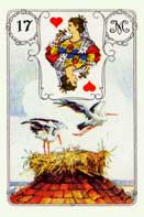 Космос, Мироздание, Цели жизни, Законы Вселенной, духовные устремления, тоска мечты, вечность, Зов Ангелов. Вдохновение, достижение. Это счастливая карта, которая, как и соответствующая карта Таро (аркан 17, Звезда), символизирует надежду, вдохновение и будущие успехи. Одновременно карта предупреждает о возможном головокружении и "звездной" болезни, напоминает о необходимости в любом случае оставаться скромным и не хватать звезд с неба - иными словами, цели должны соответствовать возможностям. Рядом с благоприятными картами Звезда сулит ряд удач, рядом с неблагоприятными - ряд неудач и возможных ошибок. Если карта выпадает далеко от карты спрашивающего, это указывает на то, что желание его исполнится. В вопросах взаимоотношений. Романтические отношения, возвышенные чувства. Иногда может говорить о чисто платонических взаимоотношениях. Общение часто строится по схеме «Талант и поклонник». В деловых вопросах. Перспективное начинание, далеко идущие планы. Карта ЗВЕЗДЫ очень далека от материальных сфер, она тесно связана с новыми разработками, открытиями. Доходы возможны лишь в отдаленной перспективе. В медицинских вопросах. Физиотерапия. Лечение магнитными и электрическими полями. Состояние здоровья - вполне удовлетворительное, при заболевании - перспектива скорого выздоровления.