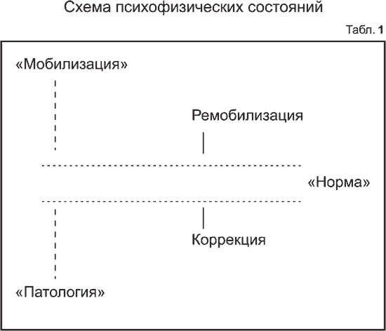 Практика показывает, что данная схема значительно облегчает ориентировку в тех многочисленных и разнообразных психофизических состояниях, которые наблюдаются у спортсменов и тренеров в процессе учебно–тренировочных занятий и во время соревновательной борьбы. О ремобилизации как об особой задаче, ставшей весьма актуальной в последние десятилетия, будет рассказано несколько ниже. Начнем подробный анализ каждого из трех психофизических состояний, согласно приведенной схеме, снизу–вверх – с патологии.