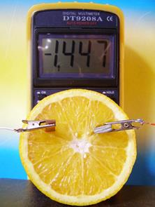 Сухие элементы применяются при малых токах и прерывистых режимах работы. Поэтому такие элементы широко используются в телефонных аппаратах, игрушках, системах сигнализации и др. 2) Фрукты и овощи, которые мы используем в повседневной жизни, тоже содержат большое количество ионов. Если в эту среду установить цинковый и медный электроды мы получим простой гальванический элемент. А по величине ЭДС можно будет судить о концентрации некоторых ионов. Эту величину даже можно использовать при оценке качества этих продуктов, что немаловажно для сохранения нашего здоровья.