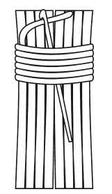 Оплетка – это несколько витков, охватывающих нити. Ее можно выполнить несколькими способами. Сложите небольшой отрезок нити пополам. Остальные нити соедините в пучок, прибавьте к нему сложенную пополам нить петлей вверх. Возьмите одну крайнюю нить из пучка и осуществите ею несколько горизонтальных витков сверху вниз. Затем кончик нити вставьте в петлю и потяните ее концы вниз так, чтобы конец нити вышел снизу под витками. Затяните концы оплетки и опустите их вниз. Вместо петельки из дополнительной нити можно использовать крючок, а саму оплетку выполнить из нити другого цвета (рис. 6).