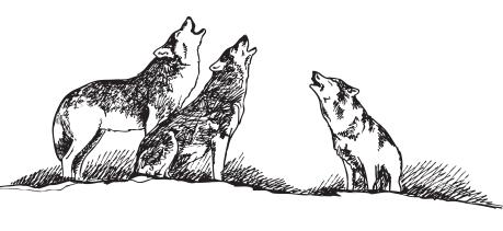 Рис. 6.2. Волчий вой – прекрасное средство для обеспечения сплоченности группы, несмотря на отсутствие в нем падежей, словообразования, иерархически устроенного синтаксиса и т. п. Тем самым для объяснения того, как возникли наиболее существенные характеристики языка, гипотеза Данбара как минимум недостаточна. Кроме того, размер группы определяется не только объемом мозга: на него накладывают ограничения и тип питания, и пресс со стороны хищников, и конкуренция с другими группами, – это можно наблюдать и на обезьянах, и на людях, живущих охотой и собирательством 58. Скорее всего – исходя из существовавших в те времена в Африке экологических условий, – предки человека жили группами в пределах от 35 до 75 особей 59 (по другим оценкам – от 20 до 50), а такого размера группы встречаются и у современных обезьян, которые могут поддерживать отношения в социуме, не используя языка. Вообще, по данным археологов, группы размером более сотни человек появились у человека сравнительно недавно – еще 40 тысяч лет назад все люди жили родовыми общинами, насчитывавшими от 5 до 80 человек, все или почти все из которых были связаны между собой узами крови или брака 60. Иное дело, что язык (в отличие от груминга) дает возможность развивать не только групповую, но и межгрупповую кооперацию, так что человек, оказавшийся на территории другой общины, может во многих случаях рассчитывать на теплый прием, разные общины могут вместе отмечать ритуальные праздники, обмениваться невестами (что очень полезно, когда внешние условия нестабильны и, соответственно, лучшим половым партнером является партнер генетически далекий, см. гл. 5) и т. п. 61. Японский приматолог Нобуо Масатака 62 полагает, что языковой способности предшествовала способность музыкальная. Эгоистические индивиды не могли создать язык, следовательно, прежде всего им надо было объединиться, почувствовать себя единым коллективом – настолько единым, чтобы обмен информацией имел смысл. В языке, конечно, есть специальные (их называют “фатические”) средства для поддержания контакта – это слова “здравствуй”, “пожалуйста”, фразы типа “как дела?” и т. п. Единственная “информация”, которую можно из них извлечь, это примерно “я чувствую к тебе достаточную симпатию, чтобы стараться не вызывать твоего раздражения” (различие конкретных выражений обусловлено разнообразием ситуаций, где их полагается употреблять). Но все же функцию сплочения коллектива язык выполняет явно не оптимально – недомолвки, недопонимания, наконец, просто грубые выражения способствуют скорее обратному. Масатака обращает внимание на начальные стадии человеческого общения – на общение матери с ребенком. Когда ребенок начинает гулить, у самых разных народов можно наблюдать, как мать обращается к ребенку с какими‑нибудь совершенно “неинформативными” словами типа агу, а ребенок отвечает ей нежным гулением. Такие контакты, когда обмен вокализациями не передает никакой информации, но создает эмоциональный контакт, теплые взаимные чувства, отмечен и у обезьян – в частности, у японских макак (правда, у них подобным образом общаются между собой взрослые особи). Далее, когда ребенок начинает говорить, мать часто, обращаясь к нему, говорит высоким голосом, подчеркивая ритм своих фраз. Высокий голос привлекает внимание ребенка, ритм провоци