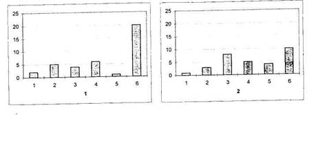 Г Цветовая диагностика эмоций ребенка Глава 4. Диагностика социальных эмоций в контексте решения... минутный характер. Есть и довольно большая часть детей, отрицающая свой выбор (диаграммы 1 и 2). Эти ценности являются декларированными, навязанными требованиями социума, но вряд ли определяют поступки и тем более желания этих детей. Анализ распределений данных по классам показал, что успешность в учебе и возраст школьников влияют на формирование ценностей. В 31-м классе нет детей, которые поставили «собственный выбор» на последнее место. А в 51-м классе таких детей больше, чем в 32-м. Рис. 16. Распределение отношений по параметру «собственный выбор» в зависимости от пола: 1 — мальчики, 2 — девочки Анализ данных по полу показал, что абсолютное количество мальчиков принимает «собственный выбор». Но среди них также есть и такие, кто не принимает свой «собственный выбор» и ставит его на последнее место, и их больше, чем таких девочек. Среди школьников, не имеющих инверсий в системе личностных отношений, нет таких, кто поставил «собственный выбор» на последнее место. Выводы В возрасте 9-12 лет у школьников происходит переоценка системы личностных отношений и ценностей. Те отношения, которые в дошкольном возрасте выступали как ценности: «счастье», «доброта», «дружба», — в школьном возрасте все больше выступают на уровне эмоций, дети переживают эти ценности, но не предпочитают их. С другой стороны, такие явления, как «справедливость» и «восхищение», которые выступали в дошкольном детстве на уровне эмоций, у школьников выступают как ценности. На формирование отношений к понятиям «счастье», «справедливость», «доброта», «дружба», «восхищение» определяющее влияние оказывает успешность в учебной деятельности, стиль педагогического общения и особенности подросткового возраста. На формирование отношений к понятиям «горе», «обида», «ссора», «злоба» и «скука» успешность в учебе, стиль педагогического общения и особенности подросткового возраста не оказывают определяющего влияния. Очевидно, эти факторы являются более глобальными и есть другие, которые сильнее влияют на их развитие. Успешность в учебе, стиль педагогического общения и возраст влияют на формирование ценностей школьников. Наиболее характерной актуальной ценностью для детей 10-12-летнего возраста являются учеба, досуг, труд. На втором месте оказались естественные потребности (спать, отдыхать, гулять - очевидно, этого не хватает школьникам) и профессии. Для детей 11-12 лет искусство, эстетика и наука более оказались характерными ценностями, чем для детей 9-10 лет. Дети, которые не справились с задачей выбора, нуждаются в особом внимании психолога наряду с детьми, которые выбрали асоциальные ценности. Для детей, не имеющих инверсий в системе личностных отношений, не характерны асоциальные ценности, широта их интересов охватывает не только учебу, досуг и профессии, но и искусство, эстетику, науку. Актуальны для них ценности игры и чувства человека. Для детей с деформированной системой личностных отношений характерны ценности учебы и естественных потребностей. Возможно, эти дети, не слишком успешные в учебе, стоят перед необходимостью больше времени тратить на учебу, их интересы ограничены этой необходимостью и не развиваются. Зато развиваются осознание необходимости отдыха в бесконечн