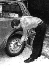 Рис. 11. Неправильное положение тела при откручивании гаек колеса