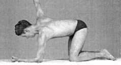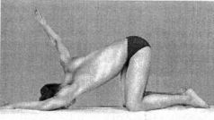 Рис. 39. Лечебная поза‑движение при болях, усиливающихся при поворотах туловища в нижнегрудном отделе позвоночника