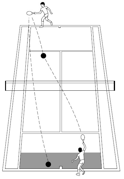 • учитесь направлять низкий удар в выбранную цель, как показано на рис. 5.31; • разучивайте то же, но при этом подающий после выполнения подачи выходит к сетке; Рис. 5.31. Направляйте удар в выбранную цель