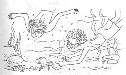Пересказ текста Костя и Вова отдыхали с папой на море. Каждый день они купались и ныряли. Под водой много интересного... Придумать, что было дальше. Под водою осьминожек. Он имеет много ножек. Ещё краб живёт на дне. Дельфин плавает в волне.