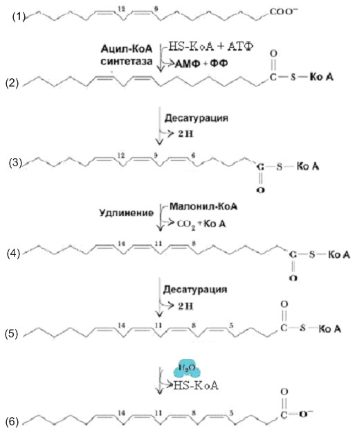 Какое соединение является исходным субстратом для данного метаболического пути? + Линолевая кислота - Арахидоновая кислота - Холестерол - Сквален - Олеиновая кислота