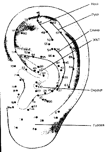 Топография биологически активных точек (поР.Nogier) и функциональные зоны уха. АР34- кора головного мозга; раздражение усиливает работу сердца, успокаивает, помогает расслаблению АР35 - асе формы головной боли, мигрень, болезни глаз АР36 - головная боль, слабость, отсутствие веры АР37 - шейный отдел позвоночника АР38 - крестцовый отдел позвоночника АР39 - грудной отдел позвоночника АР40 - поясничный отдел позвоночника АР41 - боли в области шеи, тонзиллит АР42 - грудь; показания: пневмония и туберкулез АР46 - пальцы ноги: показания: боль в стопе, травмы АР48 - лодыжка; показания: боли. травмы, воспаления АР49 - колено: показания: боли, травмы, воспаления АР50 - тазобедренный сустав; показания: боли, воспаления АР51 - укрепление, нормализация низкого давления, астма Date: 2015-09-25; view: 422; Нарушение авторских прав |