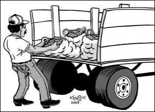 a) Poorly-designed load: No handles and load must Be carried too far from the body. b) Better-designed load: Handles are provided And the load is closer to the body