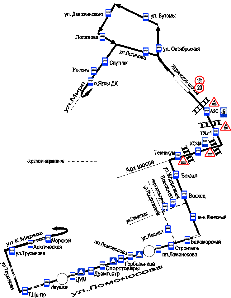 Схема регулярного автобусного маршрута общего пользования № 1 «пр. Морской – о. Ягры» (выходной день)