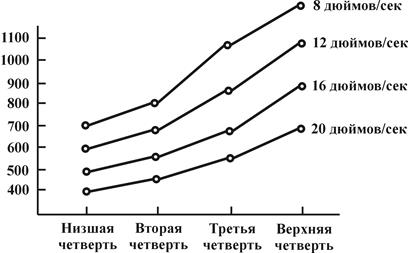 Подлинная ценность изокинстических тренажеров заключается в том, что они способны выравнивать различные уровни сопротивления, испытываемые троеборцем в диапазоне выполняемого движения. Эта вариативность нагрузки, присущая человеческому движению, объясняется изменениями в действии скелетно-мышечного рычага. В главе первой был рассмотрен пример, связанный с приседанием. В нижней позиции глубокого приседания действие рычага у атлета слабее, нежели в верхних стадиях этого соревновательного движения, и в этих верхних стадиях он лишен возможности испытать максимальные перегрузки. Величина сопротивления, оказываемого штангой, прямо пропорциональна силе, которая прикладывается атлетом в слабейшей стадии всего движения в целом, в результате, по крайней мере, 50% движения выполняется с сопротивлением ниже критического порога, требуемого для получения максимальной отдачи при тренировках на силу (или на мощность). Кроме того, это явление ограничивает возможности атлета в получении максимальных перегрузок при выполнении всех повторений подхода: несколько первых повторений в определенном смысле тратятся впустую из-за слабой перегрузки. Эта проблема дала толчок к появлению техники компенсирующего ускорения: с изменением действия рычага увеличивается скорость движения. Однако такая техника в лучшем случае опасна, и только осторожные и опытные атлеты способны получить полную отдачу от этой тренировочной методики. Изокинетические приспособления способны аккомодировать эти изменения действия рычага, контролируя скорость, с которой атлет двигает гриф. Два наиболее распространенных типа тренажеров используют или систему гидравлики для упомянутого контроля за скоростью, или систему маховиков с зажимами. На рис. 2.4 приводится типичный пример того, как изменяются показатели сопротивления на диске во время приседания, такими дисками, как правило, снабжены оба типа тренажеров. Как вы не раз замечали, чем быстрее движется гриф снаряда, тем меньшее усилие способен приложить атлет. Это отсутствие возможности генерировать максимальное усилие на высоких скоростях объясняется неспособностью троеборца стимулировать максимальное число моторных единиц в течение краткого промежутка времени, необходимого на выполнение движения. Чем медленнее движется гриф, тем больше у атлета времени на мобилизацию максимального количества моторных единиц. Очень важно в нашем спорте вызвать стимуляцию предельного количества этих единиц одновременно и затем заставить их работать в течение всего движения. Использование изокинстических тренажеров исследовано еще не в достаточной мере. То, что в этой области изучено глубоко, говорит о их несомненно благотворном влиянии на "фактор обучения организма", то есть на его способность под воздействием изокинстических тренировок мобилизовать все большее и большее количество моторных единиц одновременно. Работа с изокинетичсскнми тренажерами - это самая лучшая на сегодняшний день методика совершенствования данного аспекта мощности. Мой личный опыт работы с этими тренажерами показал, что наилучший способ включения в данную методику - это начинать работать на сравнительно низких скоростях и в течение примерно