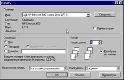 Печать документа. При печати Word в основном используют установки Windows, заданные по умолчанию, но можно изменять эти установки, используя диалоговое окно Печать.