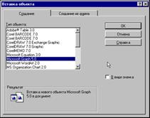 Запуск программы Graph. Для запуска приложения Graph нужно выбрать команду ВставкаÞОбъект. На экране отобразится диалоговое окно Объект.
