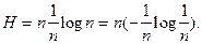 Поскольку 1/n есть вероятность Р любого из равновероятных результатов события, то Н=n (- РlogP). Если имеет место событие, которое может иметь результаты М1,..., Мn, с вероятностями Р1,..., Рnсоответственно, то мера его неопределенности (мера разнообразия события) может быть выражена формулой