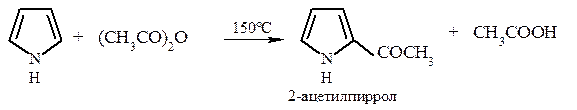 Ацилирование. Пиррол, и особенно его гомологи, можно ацилировать при повышенной температуре ангидридами карбоновых кислот без катализатора.