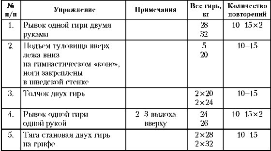 Таблица 3.2 Интервальная тренировка на соревновательных гирях