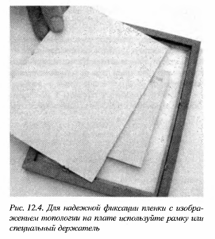 2. Положите на плату свою прозрачную пленку с изображением и вставьте их вместе в держатель, как показано на рис. 12.4.
