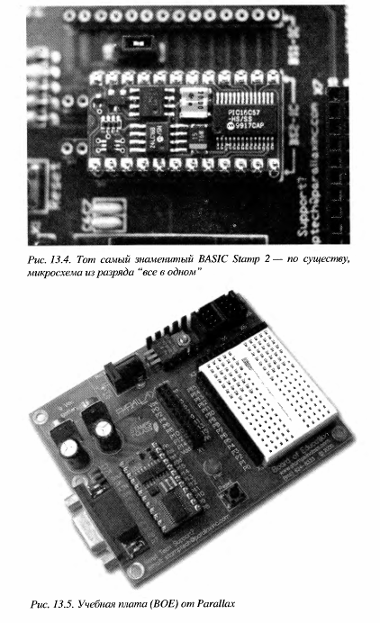 Микроконтроллеры со встроенным языковым интерпретатором легче для понимания и использования. Новичку можно смело порекомендовать начинать именно с этой категории программируемых микросхем. Типичными примерами таких микроконтроллеров служат семейства BASIC Stamp и OOPic, которые мы подробно рассмотрим в разделе "Микроконтроллеры, которые стоят особняком".