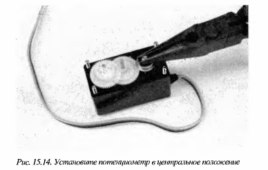 7. Возьмите небольшие плоскогубцы и установите потенциометр в центральное положение, как показано на рис. 15.14.