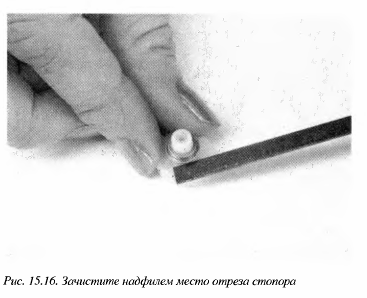9. Аккуратно зачистите надфилем остатки стопорного шва. Как именно удалить необрезанную пластмассу, решайте сами — это не так уж важно, главное — результат. Проще всего, конечно, это сделать при помощи небольшого плоского надфиля (рис. 15.16).