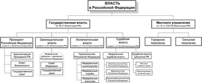 Разделение власти — политико-правовая теория, согласно которой государственная власть должна быть разделена на независимые друг от друга (но при необходимости контролирующие друг друга) ветви: законодательную, исполнительную и судебную. Предложена Джоном Локком. Термин введён Шарлем-Луи де Монтескьё Разделение законодательной, исполнительной и судебной властей является одним из важнейших принципов организации государственной власти и функционирования правового государства. Принцип разделения властей означает, что законотворческая деятельность осуществляется законодательным (представительным) органом, исполнительно-распорядительная деятельность — органами исполнительной власти, судебная власть — судами, при этом законодательная, исполнительная и судебная ветви власти самостоятельны и относительно независимы. Разделение властей основывается на естественномразделении таких функций, как законотворчество, государственное управление, правосудие. Каждая из ветвей в той или иной степени осуществляет государственный контроль. Современное понимание принципа разделения властей дополнено также необходимостью разделения полномочий (предметов ведения) между органами государственной власти и управления и муниципальными органами. В федеративном государстве система государственных органов трёхуровневая, разделена на федеральные органы власти, органы власти субъектов федерации и органы власти на местах (местный уровень власти). Принцип разделения властей заключается в том, чтобы властные полномочия были распределены и сбалансированы между различными государственными органами, чтобы исключить сосредоточение всех полномочий либо большей их части в ведении единого органа государственной власти либо должностного лица и тем самым предотвратить произвол. Независимые ветви власти могут сдерживать, уравновешивать, а также контролировать друг друга, не допуская нарушения Конституции и законов, это так называемая «система сдержек и противовесов».