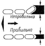 При переправі стінкою основне навантаження отримує учасник, що знаходиться вище всіх по течії. Він бореться із струменем води, а інші лише підпирають його. Цей спосіб переправи достатньо надійний і швидкий. Але учасник, що вийшов вперед або відстав із стінки (рис. 4.4), різко зменшує надійність стінки, оскільки він не тільки не підтримує сусідів, але й тягне їх вниз, збільшуючи площу, яка піддається дії струменя.