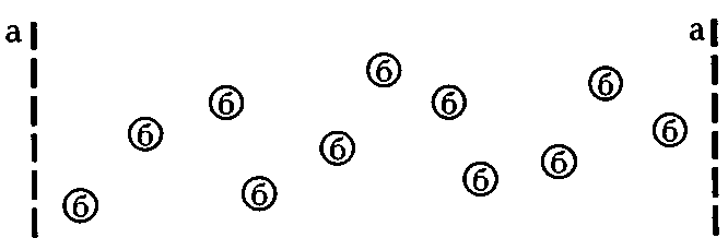 Рис. 4.18. Схема етапу "рух по жердинах": а - контрольна лінія; б - гаті; в - жердини