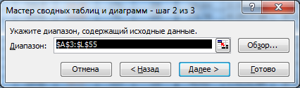 Рисунок 26:Мастер сводных таблиц и диаграмм - шаг 2 из 3