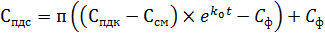 Величины ПДС для выпусков сточных вод в водохранилища и озера определяются в соответствии с разделом 1 по приведенным ниже расчетным уравнениям, аналогичным уравнениям раздела 1. Учитывая специфику гидродинамического и биохимического состояния данных водоемов: Спдс = n(Спдк – Сф) + Сф, где Спдк – предельно-допустимая концентрация загрязняющего вещества, г/м3; Сф – фоновая концентрация загрязняющего вещества в воде водоема, определяемая по уравнению, приведенному в разделе 1. С учетом неконсервативности загрязняющего вещества расчетное уравнение имеет вид: