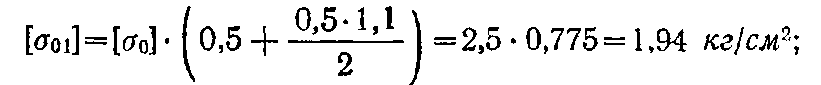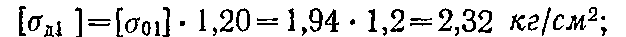 R01 = R0(0,5 + 0,0033H) = 2,5 (0,5 + 0,0033∙110) = 2,15 кг/см2; Rд1 = R01∙1,20 = 2,15∙1,20 = 2,58 кг/см2.
