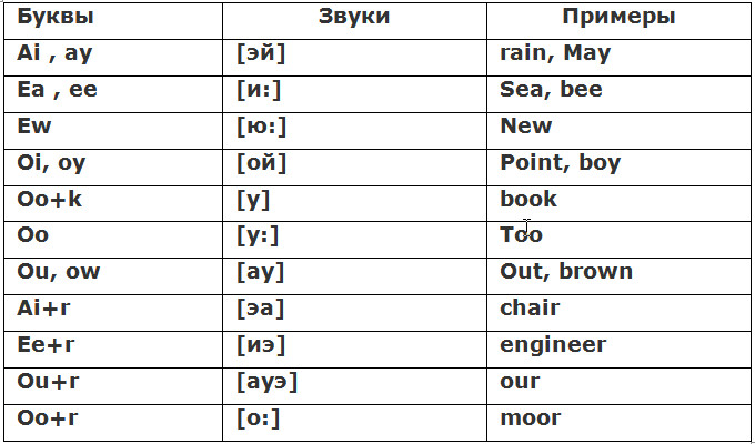 *с м\з (межзубный) – th — в русском языке подобного звука нет. Этот звук глухой и напоминает русский звук «с», но при его произнесении язык находится между передними верхними и нижними зубами, и в сквозь создавшуюся узкую щель с силой проходит струя воздуха. **аналогично произносим и межзубный звук «з». Таблица чтения гласных в сочетании с согласными Для качественного усвоения звуковой системы и правил чтения английского языка рекомендуем ежедневно повторять вышеуказанные правила чтения и пытаться читать односложные слова по словарю. Подсказка: для контроля правильного произношения вы можете использовать звуковую функцию онлайн словарей. Date: 2015-09-22; view: 720; Нарушение авторских прав |