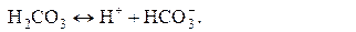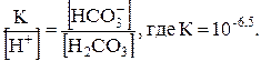 Если количества НСО-3 и Н2СО3 равны (например 10-2 моль/л), то Н+=10-6,5 моль/л и рН=6,5. Суммарное количество НСО-3 и Н2СО3 составляет 2×10-2моль/л. При добавлении в раствор кислоты равновесие сдвигается влево с образованием Н2СО3. Чтобы изменить отношение НСО-3 / Н2СО3, например до 1/3, потребуется добавить кислоты около 5×10-3 моль на литр раствора. Прибавленное количество Н+ почти в 104 раз превышает первоначальное содержание водородных ионов. Новое значение рН можно вычислить: