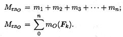 Главный момент системы сил равен алгебраической сумме моментов сил системы относительно точки приведения.