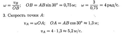 Пример 2. Стержень А В соскальзывает вниз, опираясь концами о стену и пол (рис. 12.9). Длина стержня 1,5 м; в момент, изображенный на чертеже, скорость точки В vb — 3 м/с. Найти скорость точки А. Решение
