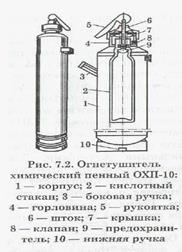 Средства пожаротушения подразделяются на: · первичные, · стационарные, · передвижные. К первичным средствам относятся огнетушители, гидропомпы (поршневые насосы), ведра, бочки с водой, ящики с песком, асбестовые полотна, войлочные маты, кошмы и т.п. Огнетушители бывают химические пенные (ОХП-10, ОП-5, ОХПВ-1О и др.), воздушно-пенные (ОВП-5, ОВП-10), углекислотные (ОУ-2, ОУ-5, ОУ-8), углекислотно-бромэтиловые (ОУБ-3, ОУБ-7), порошковые (ОПС-6, ОПС-10).