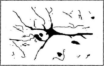 Системность в нервных процессах определяет и системность в материальных формах их выражения, в организации системы языка. Окрашивая отдельные нервные клетки, физиологи получают примерно такие изображения участков коры головного мозга: