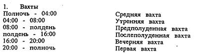 Примечание: Иногда на судах Вечерняя вахта 16:00 - 20:00 подразделяется на две "Собачьих вахты"