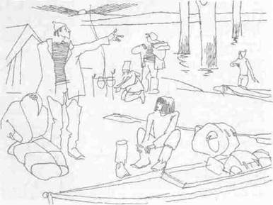 Кто делал из предыдущего правила вывод, что чем меньше состав экспедиции, тем лучше, безусловно, ошибся. Нет ничего тоскливее, чем часы и дни, проведенные в молчании, которое прерывается лишь словами, давно вам известными, и репликами, тысячу раз слышанными. Экспедиция, состоящая всего из двух или трех человек, может быть и будет вполне успешной, но она не принесет радости. Частым спутником такого микроклимата будет скука — смертельный враг туризма. Однообразие губительно. Уже на второй день похода вас будут раздражать единогласные решения всех вопросов; на третий день вы будете останавливаться возле каждого рыбака, чтобы хоть немного отвести душу в разговорах со свежим человеком; на пятый — зададите себе вопрос: «Зачем я пошел в этот дурацкий поход?» — а на шестой решите навсегда порвать с туризмом. Многолетний опыт подсказывает, что участников похода должно быть не менее пяти-шести. Если их будет меньше, то вы не найдете на привале слушателя, когда вам захочется рассказать вашу любимую историю; всем удастся уклониться от этого под предлогом разведения костра, приготовления ужина, ремонта палатки и т. п. Не удастся вам и переложить выпавшую на вашу долю неприятную работу на кого-нибудь другого, потому что в микроколлективе все всегда заняты.