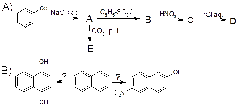 I. Спирты. 1. Классификация, номенклатура и изомерия одно- и многоатомных спиртов. Их физические свойства. 2. Способы получения спиртов: гидратация алкенов, гидролиз галогенопроизводных, восстановление карбонильных соединений, Mg-органический синтез, брожение. 3. Химические свойства. 3.1. Кислотно-основные свойства: образование алкоголятов и оксониевых солей. 3.2. Нуклеофильные свойства спиртов: образование простых и сложных эфиров. О-алкилирование – синтез Вильямсона; О-ацилирование, алкилсульфаты – алкилирующие агенты, алкилнитраты (нитроглицерин, нитросорбид). 3.3. Реакции нуклеофильного замещения гидроксильной группы – образование алкилгалогенидов. 3.4. Реакции элиминирования – образование алкенов. 3.5. Окисление первичных и вторичных спиртов – образование альдегидов и кетонов. 4. Многоатомные спирты: диолы (гликоли), триолы (глицерины), эритриты, пентиты, гекситы. Способы получения и особенности химических свойств многоатомных спиртов: повышенная кислотность ОН-групп, образование комплексов с Cu2+. Природные многоатомные спирты – сорбит, ксилит, инозит. 5. Непредельные спирты – виниловый (правило Эльтекова), аллиловый. II. Фенолы. 1. Классификация, номенклатура и физические свойства фенолов. 2. Способы синтеза фенола: щелочное плавление сульфокислот, замещение хлора в хлорбензоле, из солей диазония, окисление изопропилбензола (способ Сергеева). 3. Химические свойства. 3.1. Кислотные свойства фенолов, образование солей и комплексов с металлами. Качественные реакции обнаружения фенолов. 3.2. Нуклеофильные свойства: получение простых и сложных эфиров. Анизол, фенетол, аспирин (ацетилсалициловая кислота), фенилсалицилат (салол). 3.3. Реакции электрофильного замещения в ароматическом ядре фенолов и нафтолов: галогенирование, нитрование, сульфирование, карбоксилирование, гидроксиметилирование. Фенолфталеин, пикриновая кислота. 3.4. Окисление фенолов. Образование хинонов. Хингидрон. Роль системы гидрохинон-хинон в биологических процессах. 4. Многоатомные фенолы – гидрохинон, резорцин, пирогаллол – их восстановительные и антиоксидантные свойства. Природные полифенолы – антиоксиданты: токоферол (витамин Е), рутин – (витамин Р), антоцианины. III. Простые эфиры. 1. Общая характеристика простых эфиров– номенклатура, изомерия, физические свойства. 2. Методы получения простых эфиров: синтез Вильямсона, дегидратация спиртов, присоединение спиртов к алкенам и алкинам. 3. Химические свойства. 3.1. Основные свойства – образование оксониевых солей с минеральными кислотами и кислотами Льюиса. Образование комплексов со щелочными металлами – краун-эфиры. 3.2. Расщепление при действии с HI. 3.3. Окисление кислородом, образование α-гидроперекисей. 4. Циклические эфиры. Тетрагидрофуран, диоксан – апротонные полярные растворители. Оксираны (окиси алкенов, 1,2-эпоксиды) – методы их получения, реакции с раскрытием цикла. ПИСЬМЕННОЕ ДОМАШНЕЕ ЗАДАНИЕ: 1. Дополните схему следующих превращений, дайте названия соединений А, В, С и D. Приведите схемы механизмов реакций В→А и C→D.