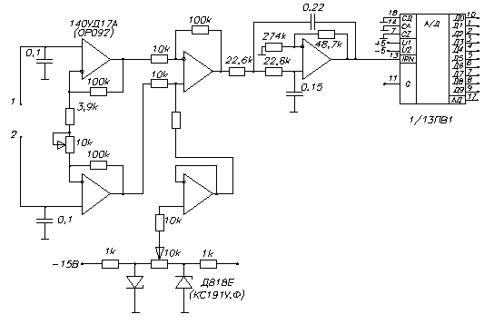 Более предпочтительной схемой является схема с дифференциальным включением преобразователей, в которой один из тензорезисторов испытывает деформацию растяжения, а другой тензорезистор – деформацию сжатия. В этом случае температурная погрешность также исключается, а чувствительность тензомоста возрастает в 2 раза.