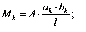 Рисунок 2.2 - Определение перерезывающих сил и изгибающих моментов. Как видно, обе ветви линии влияния пересекаются под сечением к. Ордината линии влияния в этом случае имеет максимальное значение и равна ak∙bk/l. При определении знака линии влияния будем считать момент положительным, если он вызывает растяжение в нижнем волокне. Положительные значения ординат линии влияния изгибающих моментов будем откладывать со стороны растянутого волокна. Максимальный изгибающий момент равен: