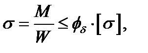 Рисунок 4.3 Прогиб двутаврового ригеля, работающего на изгиб Проверку общей устойчивости для балки производим с помощью формулы:
