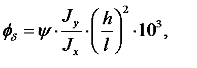 где Jx и Jy – моменты инерции сечения балки по X и Y, м4; ψ – справочный коэффициент, для стали Сталь 40 ψ = 3.06-7.79; h – полная высота балки, м.