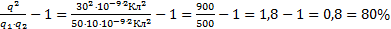 Электростатика и электродинамика Вариант 2.** 1) **Два одинаковых проводящих шарика, обладающих зарядами 50 нКл и 10 нКл, находятся на некотором расстоянии друг от друга. Их приводят в соприкосновение и разводят на прежнее расстояние. На сколько процентов увеличится в результате сила взаимодействия? Решение. Используем закон Кулона для нахождения силы взаимодействия заряженных тел F1= 2) ** Несколько одинаково заряженных шариков одного размера и массы подвешены на нитях одинаковой длины, закрепленных в одной точке. Опуская шарики в жидкий диэлектрик, заметили, что угол отклонения нитей от вертикали в воздухе и в диэлектрике остается одним и тем же. Найдите диэлектрическую проницаемость диэлектрика, если его плотность в 1,25 раза меньше плотности материала шариков.