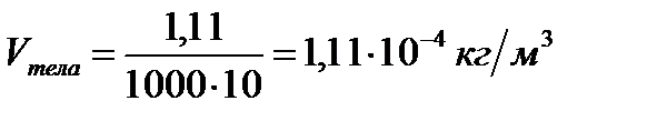 Определите плотность однородного тела, вес которого в воздухе равен 2,8Н, а в воде – 1,69Н. Выталкивающей силой воздуха можно пренебречь. Плотность воды равна. Ответ выразите в, умноженных на, ответ округлите до десятых.