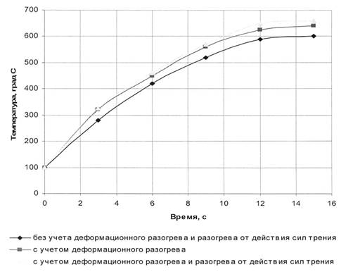 - начальная температура всех точек считается известной. При расчете температурного поля необходимо учитывать деформационный разогрев, поскольку его влияние, в большинстве случаев, значительно повышает температуру.